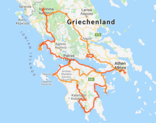 Überblickskarte mit der Reiseroute mit dem Motorrad durch Griechenland. Ausserdem eine Karte mit der Route für An- und Abreise von Wolle mit dem Motorrad.