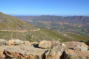 Fahrt von Swellendam nach Cape Town über den Bain’s Kloof Pass und mit Abstechern nach Wellington und Stellenbosch.