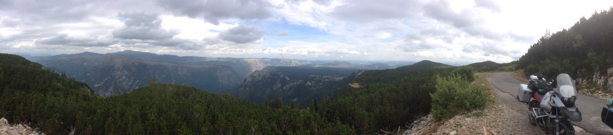So gestärkt schaffen wir die Wanderung zum Curevac locker in 20 Minuten. Hier hat man einen wirklich beeindruckenden Panoramablick auf das Tara-Tal einerseits, auf die Hochebene und das Durmidor-Massiv. Gestört wird das Panorama nur durch die unzähligen Mücken, die uns bald anfangen zu plagen.
